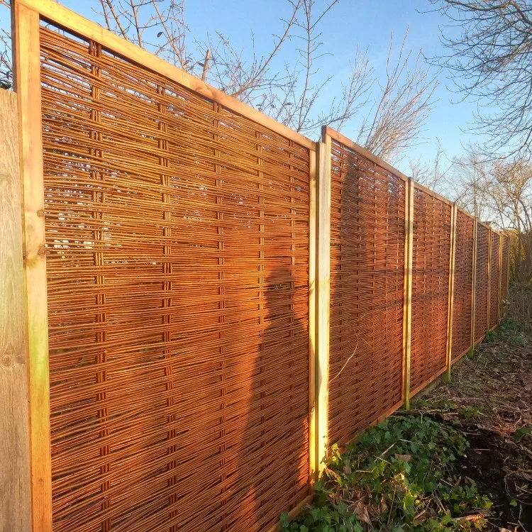 Hegnet består af håndlavet fletning i pilegrene med en varierende tykkelse på ca. 1–6 mm, hvilket sikrer et unikt og naturtro udseende – ingen sektioner er helt ens. Rammen er udført i massivt træ og delvist brunbejdset for ekstra holdbarhed og visuel dybde. Hele elementet er forbehandlet med en miljøvenlig træolie, som styrker modstandsdygtigheden overfor vejr og vind. Til trods for sin naturbehandling er produktet mærket som en del af vores Sølv-kategori – det vil sige forbedret finish og høj kvalitet, der stadig ligger inden for en attraktiv prisramme.