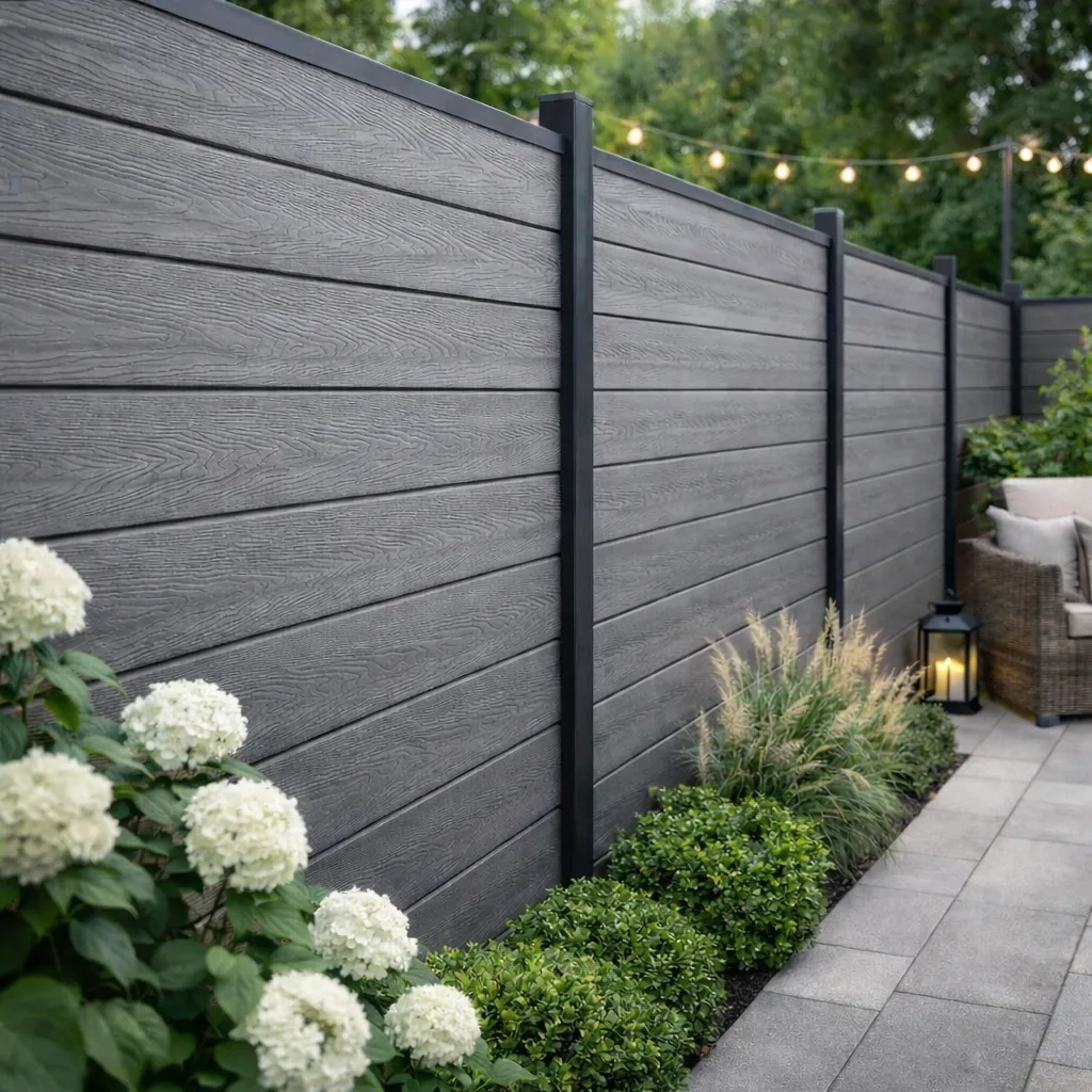 Milano komposithegn er et havehegn i komposit, der leveres med pulverlakerede, galvaniserede stålstolper i en elegant mørk antracit (RAL 7021). Det enkle, men effektive fer- og not-system gør monteringen meget nem – selv for gør-det-selv-løsninger. Med plankebrætter, der er ens på begge sider, får du et visuelt flot resultat fra alle vinkler.